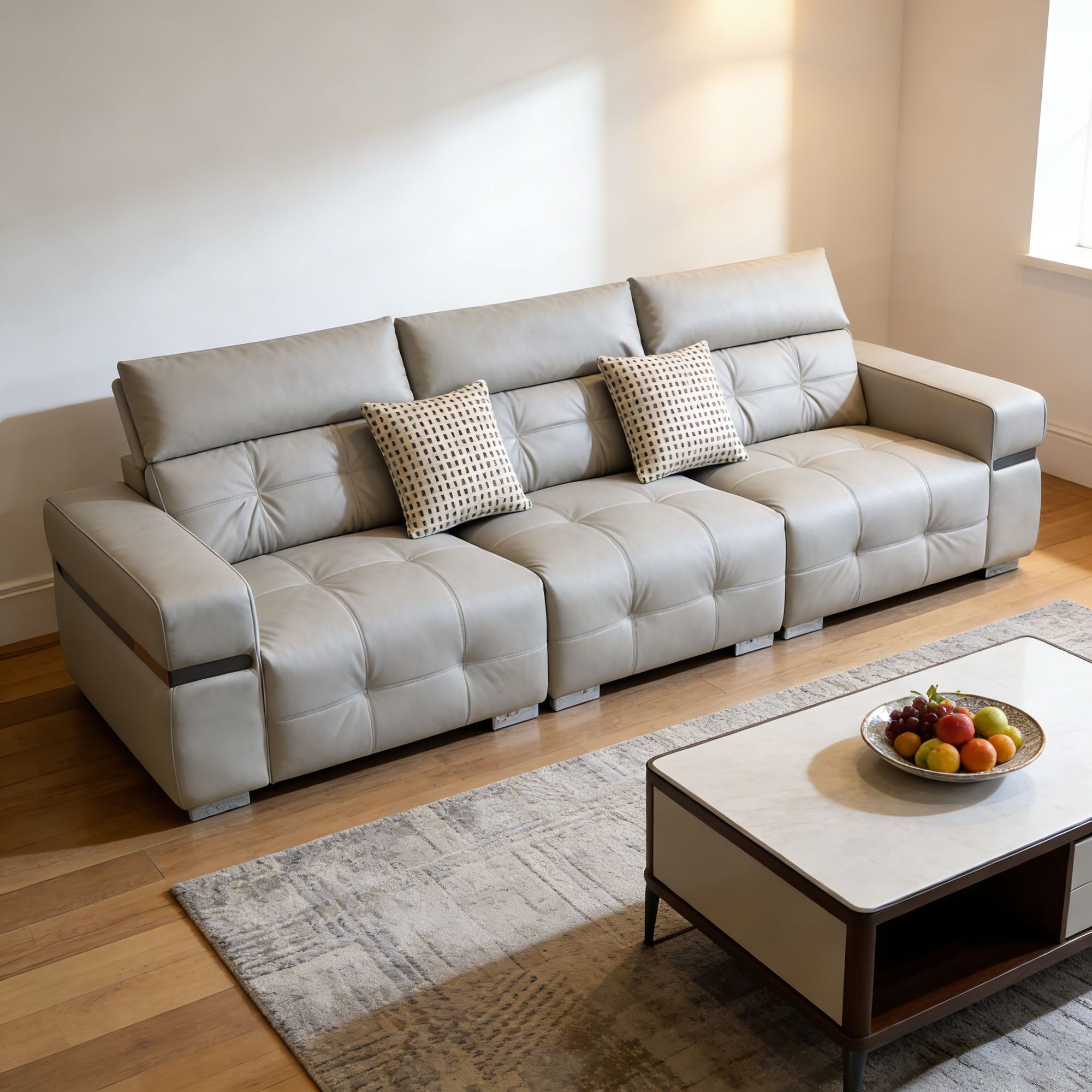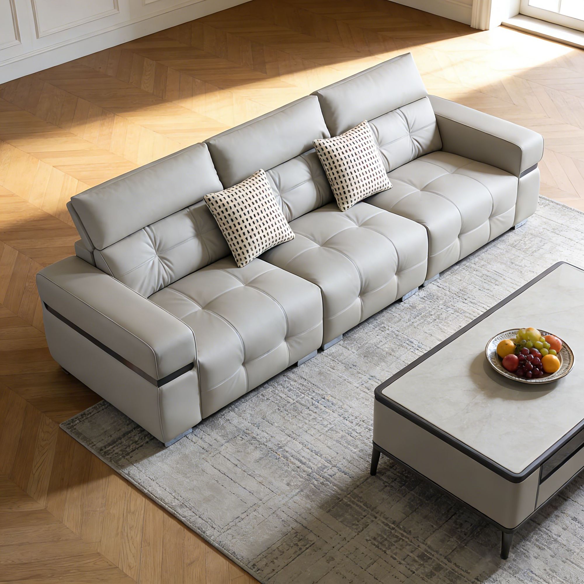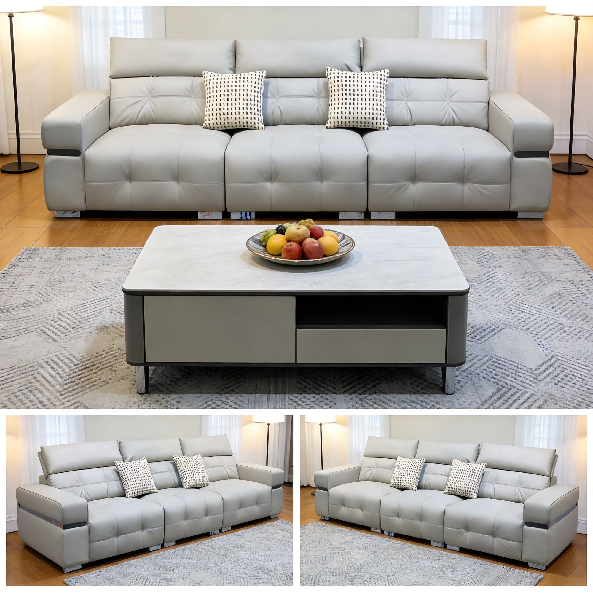 material: 松木框架、坐垫高回弹海绵、填充物舒弹棉、面料头层牛皮+配皮